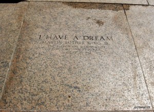 From the World War II Memorial, I made the long trek south to the Lincoln Memorial. The lighting is amazing and the brilliance of the reflection pool gave a new meaning to our history as a country. As I made my way up the stairs towards where President Lincoln is sitting while overlooking the mall, I paused so I could stop by the plaque marking the spot where Rev., Dr. Martin Luther King, Jr. delivered the iconic March on Washington speech.
