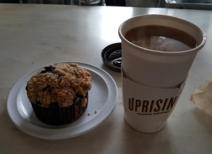 full of great blueberriesblueberry muffin and basic cup of coffee (very good)