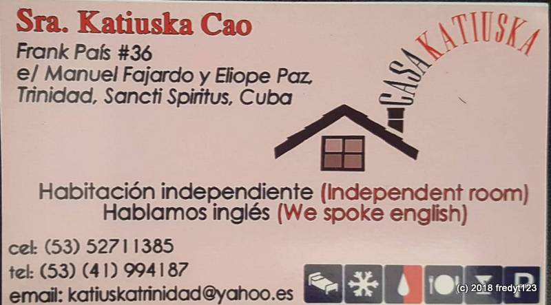 Hostal K is operated by Katia De Llano Cuesta.  She is of German ancestry, born in CUBA and a very delightful person.  Professionally, she is a retired teacher and noted economist.