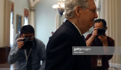 WASHINGTON, DC - MAY 07: Senate Majority Leader Mitch McConell (R-KY) walks to the Senate floor to speak about the Mueller investigation into Russian meddling into the 2016 U.S. election where he stated "case closed", on Capitol Hill on May 7, 2019 in Washington, DC (Photo by Mark Wilson/Getty Images)