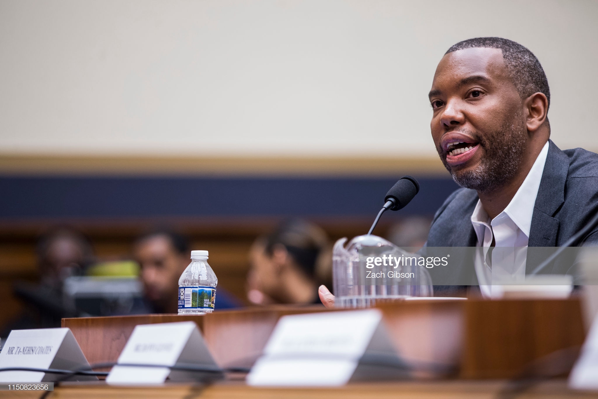 WASHINGTON, DC – JUNE 19: Writer Ta-Nehisi Coates testifies during a hearing on slavery reparations held by the House Judiciary Subcommittee on the Constitution, Civil Rights and Civil Liberties on June 19, 2019 in Washington, DC. The subcommittee debated the H.R. 40 bill, which proposes a commission be formed to study and develop reparation proposals for African-Americans. (Photo by Zach Gibson/Getty Images)WASHINGTON, DC – JUNE 18: Senate Majority Leader Mitch McConnell (R-KY) speaks to the media after attending the Republican weekly policy luncheon on Capitol Hill June 18, 2019 in Washington, DC. McConnell spoke on several topics including Iran and compensation for 911 responders. Additionally he displayed his sheer ignorance regarding the issue of Reparations by claiming he had nothing to do with slavery. (Photo by Mark Wilson/Getty Images)