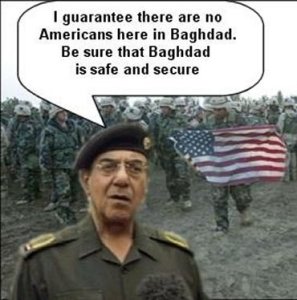 He took to the airwaves to communicate to the public the impact of the invasion with the intent to minimize any threat to his country. His rants became laughable as they were stoked in denial even though most had enough sense to see the obvious and realized how ridiculous he sounded.