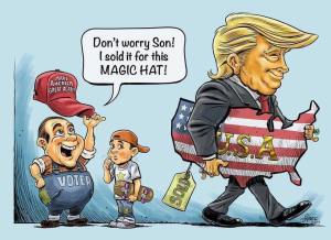 Vilifying others was a winning formula in getting people to support him. In the science of professional sales, I am reminded of the great Dr. Donald S.S. Greene who happened to be my professor in marketing. He helped me understand the psychological nuances of how marketers are able to “sell” products to consumers. He also helped me understand those who consider themselves professional but are really slick-talkers. Their success is hinged on being able to sell the proverbial “Pig in a Poke.” As the case with Trump, folk line up for miles to buy it!