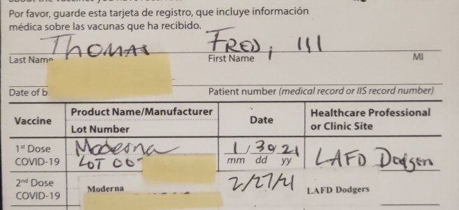 Once it became apparent a vaccine would be available, I never had any question on whether I would take it or not. For me, the data was clear and all I had to do was look at the number of deaths, which at that time was over 300,000 in the United States! As mentioned, being a person who treasures life there was never any question in getting vaccinated. It was more of when my group was eligible? As a person over the age of 65 my eligibility came around pretty quickly. I didnโt worry about any ancillary issues or discussions being bantered about regarding the legitimacy of the vaccine. It was very simple โ โbetter to have it and not need it, than to need it and not have it.โ In early February 2021 I opted to get my vaccine at Dodger Stadium because it was defined as a mega-site plus it was only six miles from my residence. The process was very organized and from start to finish it took approximately 2 hours per dose.
