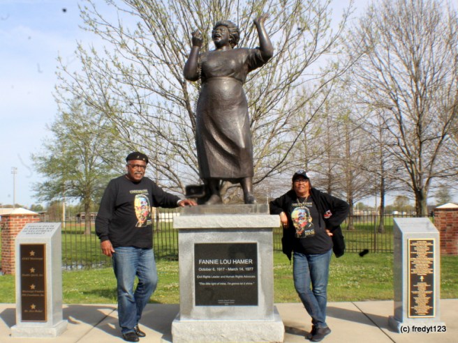 The Fannie Lou Hamer Park is part of the Fannie Lou Complex. In addition the museum (currently being updated), next door is the memorial gardenJudith and I take time for a quick pose at the great Fannie Lou Hamer statue