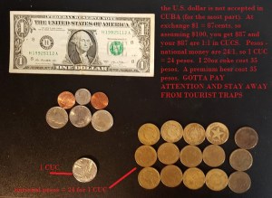 Obtaining Cuba currency.ย There is no silver bullet as whether you transfer money at the airport, at the Cadeca, with a private person, the hotel, etc. the U.S. dollar gets hammeredโฆโฆโฆ. but your options are limited.ย Anyway, expect a penalty of 15 cents for every dollar, so you once you trade your dollar you walk away with 85 cents.ย It is what it is!!!!ย But then again, youโre paying less than $50 per day for housing, less than a couple of bucks for transportation, less than $10 for food etc.ย Oh, for those cigar smokers or rum drinkers, they are very affordable as a matter of fact rum is less than the cost of water!!