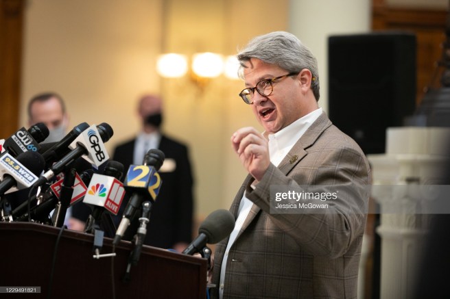 ATLANTA, GA – NOVEMBER 06: Georgia Secretary of State Ben Raffensperger holds a press conference on the status of ballot counting on November 6, 2020 in Atlanta, Georgia. (Photo by Jessica McGowan/Getty Images)