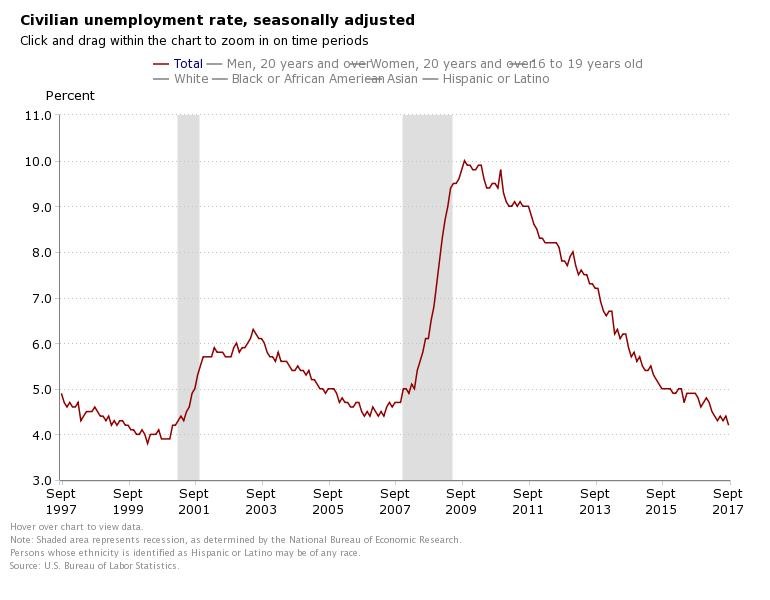 [Washington, DC] To the chagrin and frustration of Donald Trump and his administration, today the Bureau of Labor Statistics released employment data for September. The decline was expected but goes against the mantra Trump spouted about the HUGE success workers would see once he was running things.