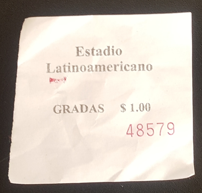 So back to getting my ticket. Unlike many stadiums where there are ticket booths with turnstiles and other entry points, Latinoamericano is a bit different. Adjacent the exterior of the pavilion section you notice a line that has formed. There is a large see-through fence as there is a lady (staff) and another person who is behind the fence operating from a table and cash box. Tickets are assembled in packs and as soon as one is sold it is ripped from the paper using a ruler and presto, that is your ticket for entry.